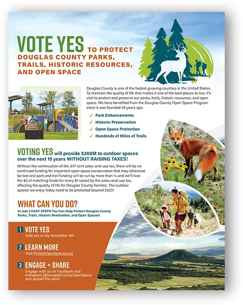 In a tense and divisive political climate, beholde was tasked with getting a key issue on the 2022 ballot and implementing a campaign to pass a tax that supports the parks, trails, open spaces ,and historical preservation of Douglas County, Colorado.